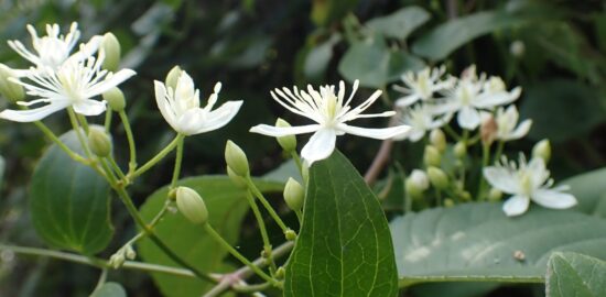 <自然新着情報!>センニンソウ、猛暑のなかで咲く白い花が、ひとときの清涼感を与えてくれています。(◀…