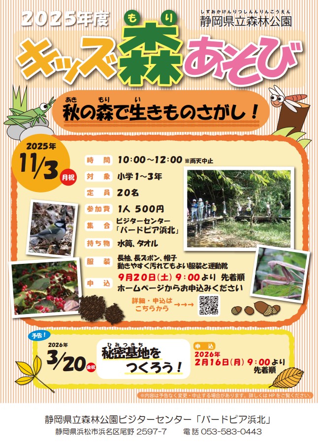 静岡県立森林公園で暮らしている、秋の森の生きものに会いに行こう!